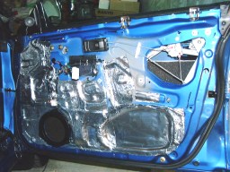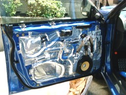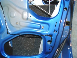 | ↑ドアノブのリンケージは、付属のチューブを使って、制振シートがくっつかないように処理しよう。(写真・左) この処理はキットに入っている説明書や、タダでもらえる小冊子にも解説されているので、それを参考にしよう。 配線は、台所用のアルミテープでまとめて、制振シートに貼り付けると、スッキリする。(写真・右) さらに、配線が内張に当たりそうな箇所は、防音テープを貼って、配線がバタつかないようにするとGOOD! もちろん、この防音テープも余分にキットに入っているから安心だ。 さて、作業も終えたところで、総評だ。(^^ゞ |