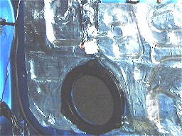 | ↑ノーマルでも少しだけ制振シートが貼ってある。(写真・左 左下部分) しかし、これでは本格的には 振動やロードノイズを抑えることは無理だ。 そこでこの本格的なキットで全面にキチンと制振シートを貼っていく。 制振シートを貼った上に、更に吸音シート(黒のスポンジ状のシート)を貼って、音響効果を高める。(写真・右) |